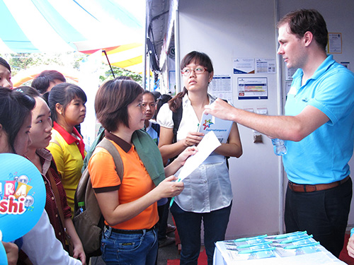 Sinh viên Trường ĐH Nông Lâm TP HCM tìm hiểu các chương trình tuyển dụng tại Ngày hội Việc làm do trường tổ chức mới đây