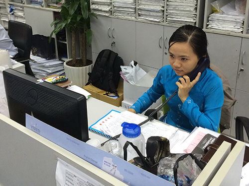 Chị Nguyễn Ngô Quỳnh Như, Công ty TNHH MTV Dịch vụ Lữ hành Saigontourist, tư vấn cho khách hàng qua điện thoại