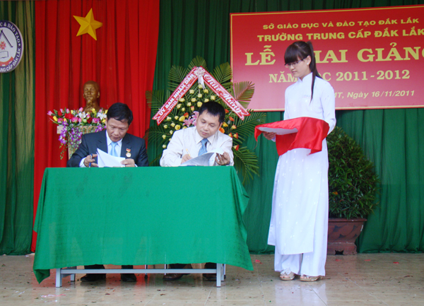 Sau khi Thầy Võ Văn Chúng- Hiệu trưởng trường Trung cấp Đăk Lăk khai giảng năm học mới, Trường Trung cấp Đăk Lăk và Công ty CP MISA VPĐD tại Buôn Ma Thuột đã tổ chức kí kết hợp tác đào tạo giữa hai bên.