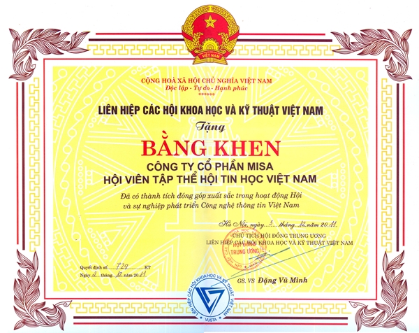 Nam trao tặng vì những thành tích đóng góp xuất sắc trong hoạt động Hội và sự nghiệp phát triển Công nghệ thông tin Việt Nam.