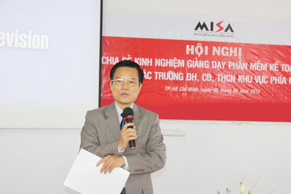 Tại đây, ông Trần Hường đã chia sẻ về sự cần thiết trong việc nâng cao kĩ năng thực hành, kinh nghiệm lúc ra trường cho các em sinh viên và lý do vì sao MISA lại có được sự hợp tác mạnh mẽ trong việc đưa phần mềm kế toán vào giảng dạy trong các trường. Ông Trần Hường cũng đã đóng góp những ý kiến hết sức chân thành nhằm nâng cao hơn nữa chất lượng hợp tác. Cuối cùng, ông đã hoan nghênh sáng kiến của MISA và chúc mừng thành quả đã đạt được của MISA trong thời gian qua