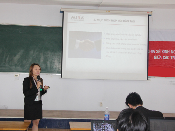 Bà Phạm Thị Ngọc Quyên – TN PTKD MISA TPHCM báo cáo tổng kết hợp tác đào tạo với các trường trong năm 2011