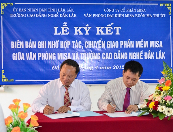 Ngày 12/4/2012, tại trường Cao Đẳng Nghề Đăk Lăk, Thành phố Buôn Ma Thuột, đã diễn ra lễ ký kết Biên bản ghi nhớ hợp tác và chuyển giao sản phẩm phần mềm MISA giữa MISA BMT và Trường Cao đẳng Nghề Đăk Lăk.