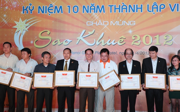 Ông Nguyễn Xuân Hoàng (Thứ 5 từ trái qua) nhận bằng khen do VINASA trao tặng