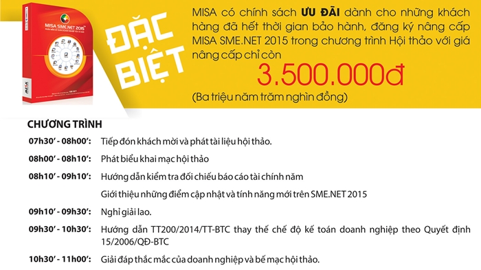 Nhằm hỗ trợ cho các Doanh nghiệp trên địa bàn Thành phố Cần Thơ cập nhật kịp thời những Chính sách, quy định mới trong công tác kế toán ngày 14/03/2015, tại Thành phố Cần Thơ sẽ diễn ra chương trình Hội thảo: “HƯỚNG DẪN TT 200/2014/TT-BTC – GIẢI ĐÁP THẮC MẮC VỀ QUYẾT TOÁN NĂM 2014”.
