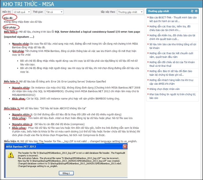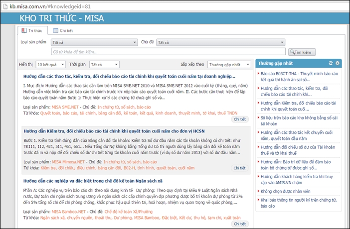 Tại địa chỉ kb.misa.com.vn khách hàng có thể tra cứu được rất nhiều vấn đề phổ thông thường gặp