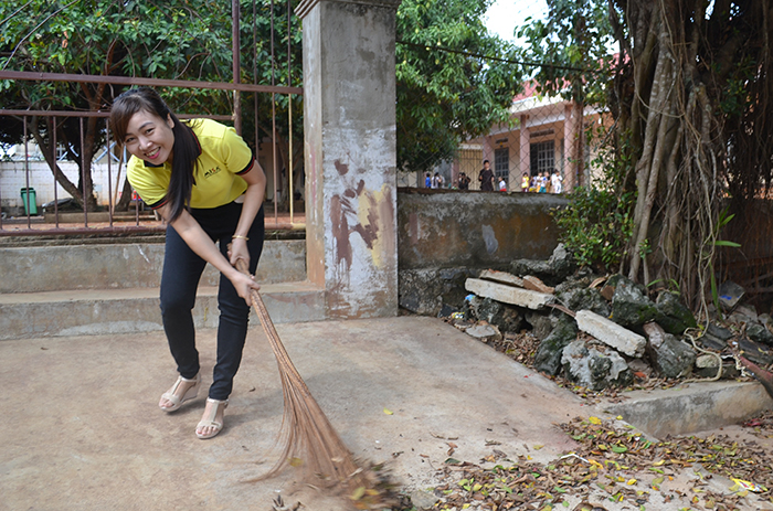 Cáctình nguyện viên MISA xông xáo tham gia vào việc hỗ trợ nhà chùa các công việcthường nhật: Quétdọn, lấy củi, tỉa bắp, …