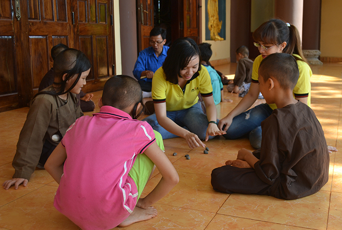 Những trò chơi mang lại tiếng cười rộn rã trong khuôn viên ngôi chùa