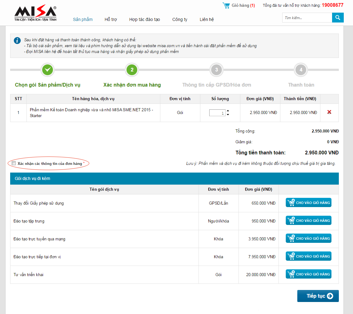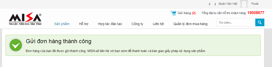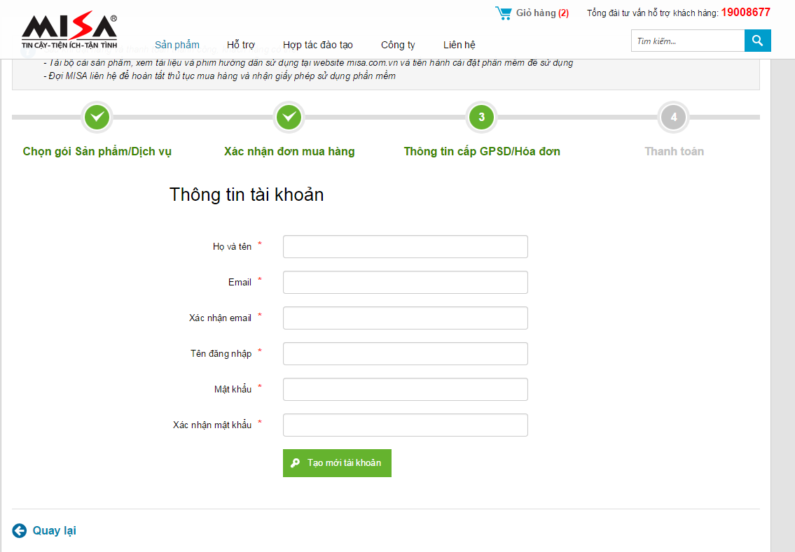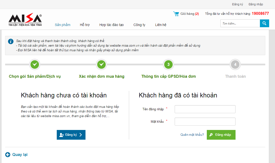 Nếu gặp khó khăn, vướng mắc khi thực hiện việc mua hàng, Quý khách hàng vui lòng liên hệ đến MISA theo thông tin liên hệ tại đây.