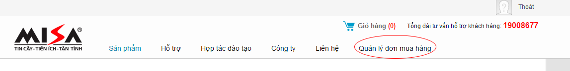 Các thông tin đơn hàng đã đặt mua trên website misa.com.vn sẽ được lưu lịch sử tại đường dẫn