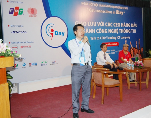 Phó Tổng Giám đốc Lữ Hồng Chương tại buổi giao lưu với các CEO hàng đầu ngành CNTT trong khuôn khổ Ngày hội việc làm ngành CNTT “Get Connections in iDay”