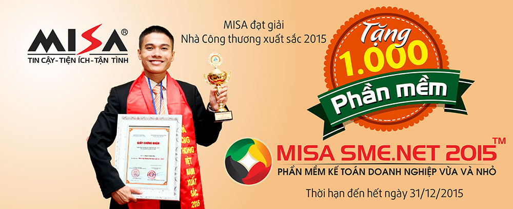 Nhân sự kiện MISA được vinh danh là Nhà Công thương Việt Nam xuất sắc năm 2015, MISA cam kết tặng phần mềm kế toán MISA SME.NET 2015 cho 1.000 doanh nghiệp thành lập mới trong năm 2015.
