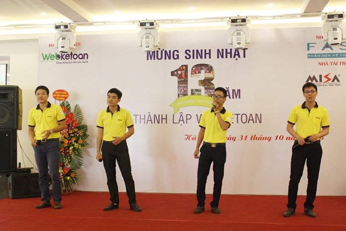 Tối ngày 1/11/2015, tại Tp.HCM, MISA tiếp tục đồng hành cùng Ban tổ chức sự kiện chúc mừng sinh nhật lần thứ 13 của webketoan tại khu vực phía Nam. Một lần nữa MISA đã tạo được những ấn tượng mạnh mẽ về sự chuyên nghiệp và nhiệt tình của người MISA, thương hiệu MISA trong mắt các thành viên của webketoan.