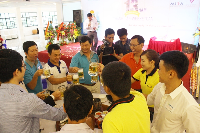 MISA cùng các nhà tài trợ và các thành viên trong ban điều hành nâng ly chúc mừng sinh nhật lần thứ 13 của webketoan