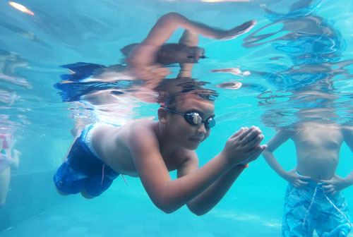 Ở bể bơi có khá nhiều học viên cùng tuổi nên bé Hoàng, con trai anh rất thích thú. Ngoài đi học lớp dạy bơi bài bản, thi thoảng anh Thanh cũng cho con đến bể bơi để có thể dạy thêm cho cháu. “Bơi lội là kỹ năng sinh tồn cơ bản, đứa trẻ nào cũng nên học”, anh chia sẻ và nhắc lại nhiều vụ đuối nước của trẻ khi mùa hè đến. Hồi nhỏ sống ở quê, 10 tuổi anh đã biết ngụp lặn bì bõm ở sông, bạn bè tự dạy cho nhau, có khi ôm cây chuối tập bơi chứ không cần thầy dạy như bây giờ.