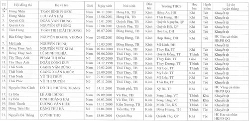 Sở GD&ĐT Thái Bình vừa công bố danh sách 21 học sinh được đề nghị xét tuyển thẳng trong kỳ thi tuyển sinh lớp 10 THPT năm học 2016 – 2017.