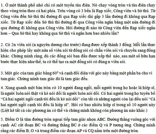 Người không quen với toán chuyên thì tất nhiên gặp những bài toán này là bí. Nhưng người quen với toán chuyên cũng không hề dễ. Có thể nói rằng tất cả những bài toán này đều thuộc vào tầm cỡ đề thi học sinh giỏi lớp 12 hay đề thi chọn đội tuyển 12. Ở đây tôi mới chọn các bài toán ở 2 chủ đề: Bất đẳng thức và số học.