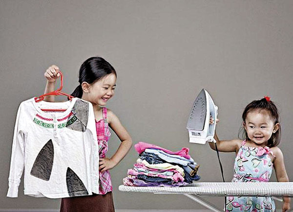 Trẻ nhỏ thì chắc chắn chưa thể tự khởi động máy giặt để giặt đồ được nhưng có rất nhiều việc phù hợp với khả năng của trẻ mà chúng có thể giúp. Trẻ cần được dạy cách tự xếp quần áo, mang những quần áo bẩn của mình đến đúng chỗ để giặt và không được vứt quần áo lung tung trong phòng. Đến lúc 8 tuổi, bố mẹ đã có thể dạy trẻ cách dùng máy giặt và đến 11-12 tuổi là trẻ nên biết giúp mẹ nhiều với công việc giặt giũ rồi.