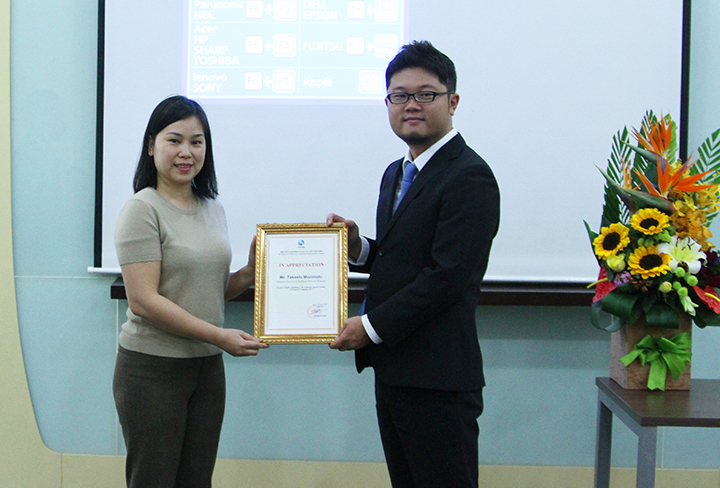 Thay mặt VINASA, bà Nguyễn Thị Thu Giang – Tổng thư ký VINASA đã trao tặng chứng nhận và gửi lời cảm ơn tới Mr. Takashi Morimoto