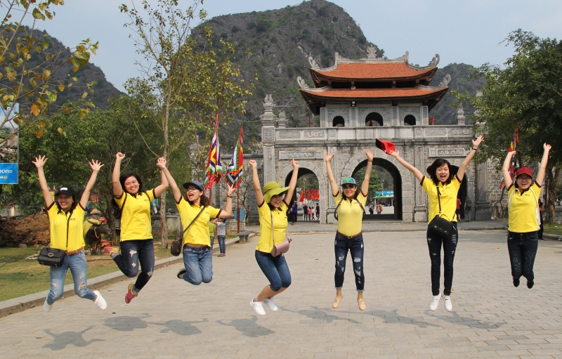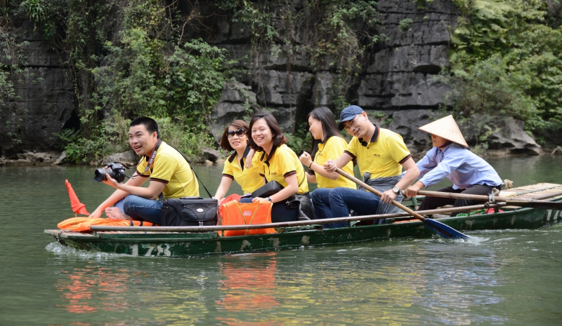 Đúng 9h00 các anh chị em đã có mặt tại khu du lịch Tràng An với tâm trạng vô cùng phấn khởi