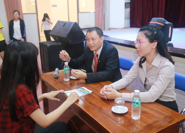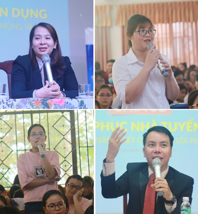 Ông Phạm Phú Lâm và bà Nguyễn Ngọc Lệ chia sẻ những lưu ý khi đi phỏng vấn với các bạn sinh viên