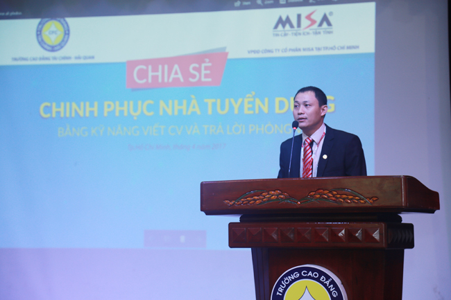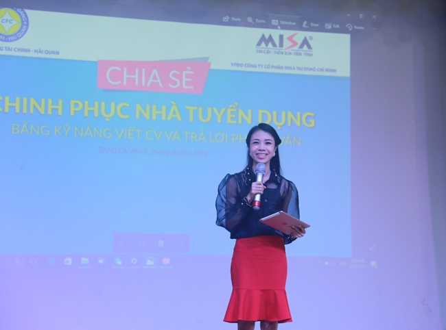 Nhằm nâng cao kỹ năng cho các bạn sinh viên, Văn phòng MISA TP.HCM đã tổ chức chương trình Chia sẻ chinh phục nhà tuyển dụng bằng kĩ năng viết CV và trả lời phỏng vấn tại trường Cao đẳng Tài chính Hải quan TPHCM. Diễn ra trong 2 buổi sáng thứ 7 ngày 15/4 và Chủ nhật ngày 16/4, Chương trình đã thu hút được gần 1500 sinh viên năm cuối của trường Cao đẳng Tài chính Hải quan.