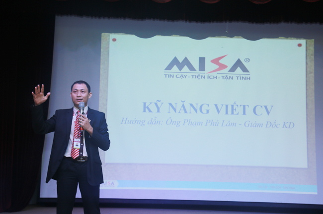 Tại chương trình, các diễn giả MISA đã chia sẻ đến sinh viên kĩ năng viết CV, làm thế nào để có một CV đẹp, làm thế nào để gây ấn tượng với nhà tuyển dụng bắt đầu từ CV…
