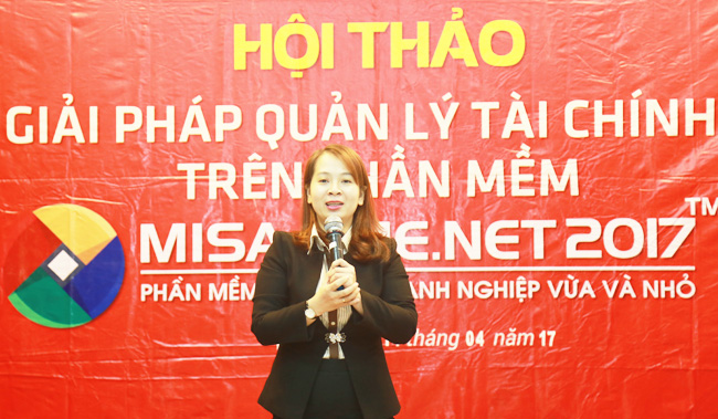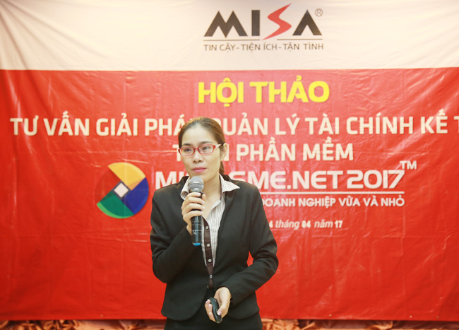 Bà Huỳnh Thị Tố Như – Quản lý bán hàng,  khu vực URANUS, Văn phòng MISA Tp.HCM trình bày về sản phẩm MISA SME.NET 2017