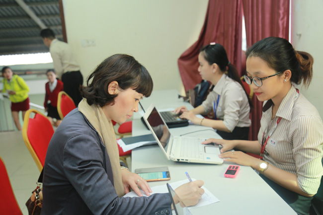 Khách hàng tham dự sự kiện tại bàn đăng ký