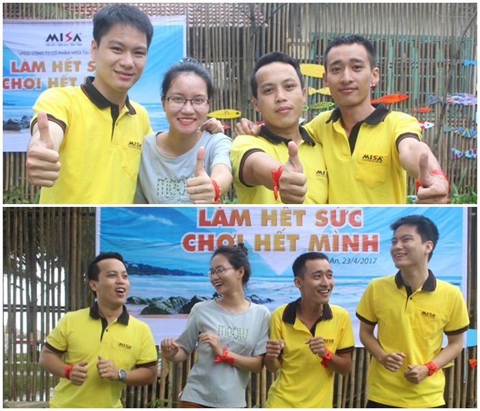 Tại MISA, do có nhiều chi nhánh và đặc thù công việc từng bộ phận nên hoạt động Teambuilding cũng được thực hiện theo từng văn phòng/trung tâm khác nhau. Văn phòng MISA Đà Nẵng đã tổ chức chương trình Teambuilding tại biển Cửa Đại – Hội An vào ngày 23/4/2017. Buổi dã ngoại này đã giúp các thành viên có nhiều cơ hội được rèn luyện sức khỏe, giao lưu và chia sẻ công việc với nhau sau những ngày làm việc căng thẳng, mệt mỏi.