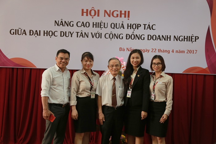 Các doanh nghiệp chụp ảnh lưu niệm với  cán bộ trường Đại hoc Duy Tân