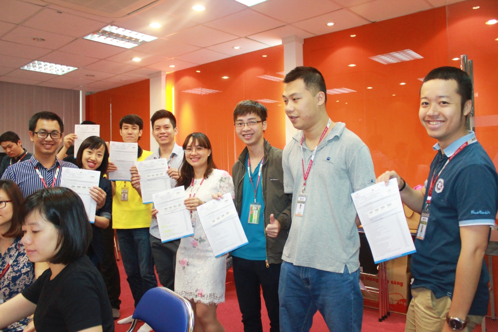 Nụ cười rạng rỡ của các thành viên khi được hưởng chế độ phúc lợi từ phía công ty