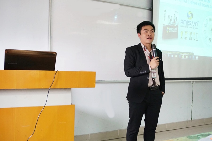 Ông Vũ Hải Nam – quản lý kinh doanh, Trung tâm kinh doanh Cloud doanh nghiệp, Văn phòng MISA Hà Nội chia sẻ về Phần mềm quản trị doanh nghiệp AMIS.VN cùng những kinh nghiệm quý báu của mình với các bạn sinh viên khoa Kế toán, trường Đại học kinh tế (Đại học Quốc gia Hà Nội) nhằm giúp các bạn tiếp cận với những công nghệ hiện đại và có một cái nhìn tổng quan về công việc thực tế sau khi ra trường