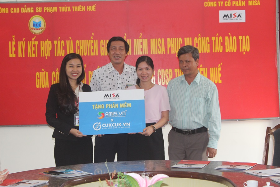 Tham dự lễ ký kết, MISA đã giới thiệu về Phần mềm quản trị doanh nghiệp AMIS,VN và Phần mềm quản lý nhà hàng, quán cafe CUKCUK.VN. Đồng thời, hai bên đã trao đổi về vấn đề tuyển dụng, đại diện MISA đã chia sẽ những kinh nghiệm xin việc làm đối với sinh viên sắp ra trường của trường Cao đẳng sư phạm Thừa Thiên Huế giúp các bạn sinh viên có những kiến thức thực tế khi ra trường để có thể tìm được một công việc phù hợp.