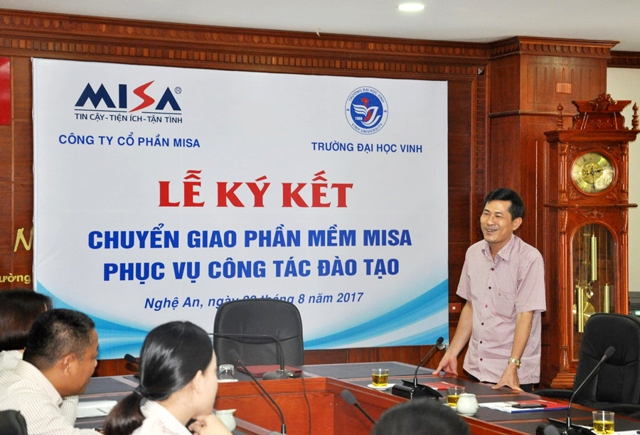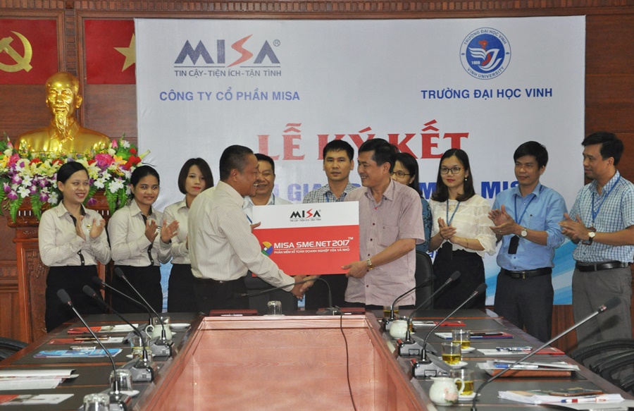 Ngày 22/8/2017, tại Hội trường trường Đại học Vinh đã diễn ra lễ ký kết hợp tác đào tạo giữa nhà trường và Công ty Cổ phần MISA nhằm đưa phần mềm MISA SME.NET 2017 vào giảng dạy cho sinh viên. Việc đưa phần mềm kế toán MISA SME.NET vào giảng dạy sẽ giúp cho các sinh viên có thêm nhiều kiến thức thực tế khi còn ngồi trên ghế nhà trường.