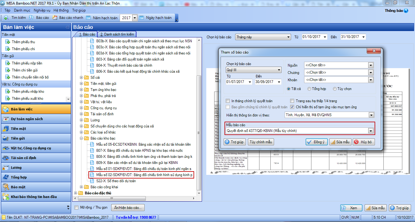 Trường hợp Quý khách hàng đã nâng cấp lên bản R9.1 nhưng vẫn chưa in được Mẫu số 02 – SDKP/ĐVDT theo Quyết định 4377/QĐ-KBNN, thì nguyên nhân có thể là Quý khách đã từng thực hiện việc tùy chỉnh báo cáo Mẫu số 02– SDKP/ĐVDT theo đặc thù riêng của đơn vị ở phiên bản trước đây.