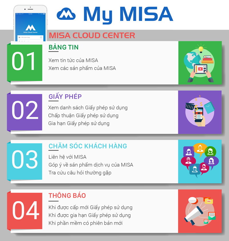 Infographic dưới đây sẽ giúp Quý khách hiểu rõ hơn về ứng dụng My MISA (MISA Cloud Center):