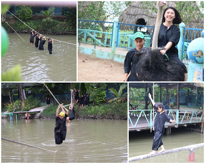 Mọi người cùng thử sức tham gia các trò chơi hết sức thú vị như đi cầu tre, cưỡi đà điểu và câu cá sấu để rèn luyện sự dũng cảm, sự khéo léo của người tham gia