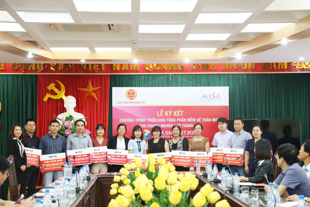Ngày 13/11/2017, MISA đã tham gia lễ ký kết với Cục thuế Hưng Yên để triển khai tặng phần mềm kế toán cho doanh nghiệp mới thành lập năm 2017 trên địa bàn tỉnh. Đây là hoạt động bổ ích nhằm khẳng định sự quan tâm của MISA tới các doanh nghiệp trên địa bàn Hưng Yên nói riêng và cả nước nói chung.
