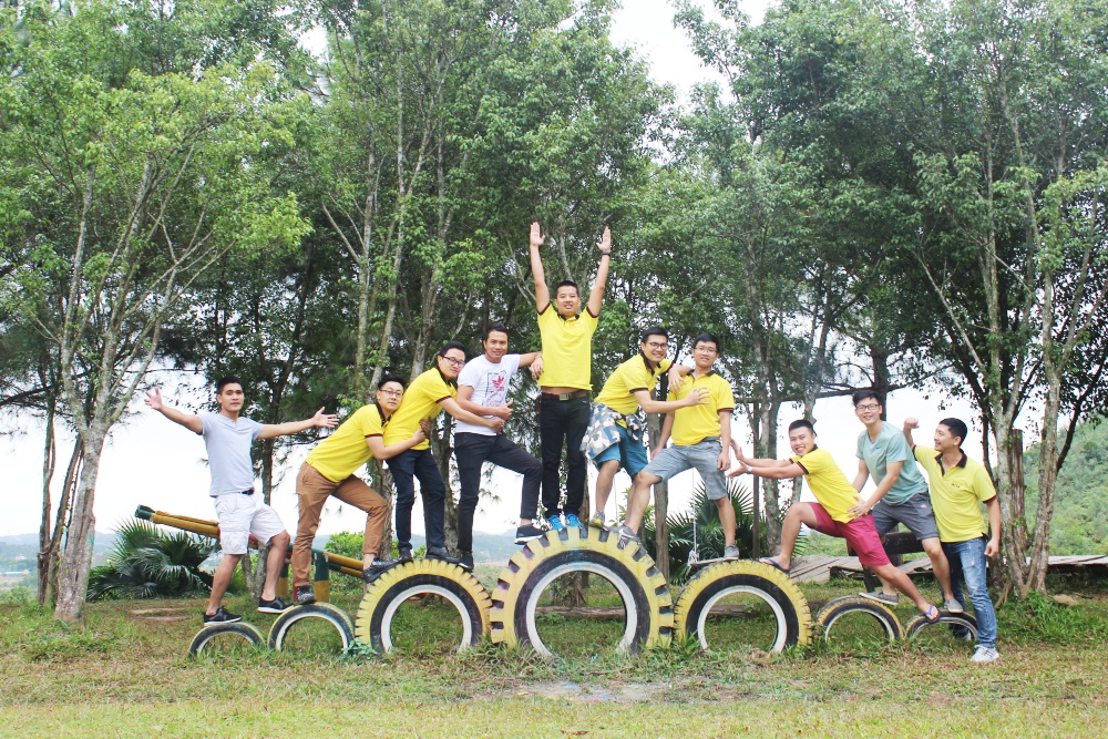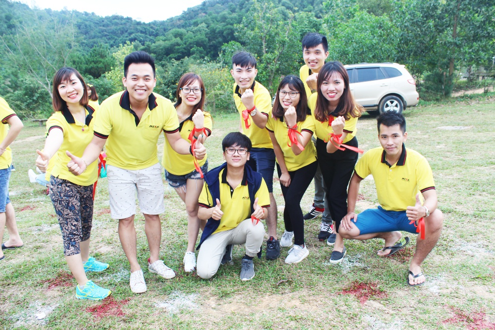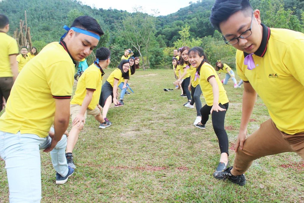 Các CBNV thể hiện tinh thần của buổi teambuilding “Vui hết mình, tận tình hết sức” tại Zen Resort, Ba Vì, Hà Nội