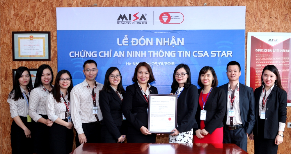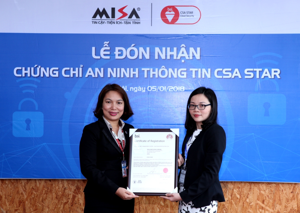 Ngày 5/1/2018, tại trụ sở chính, MISA đã vinh dự và tự hào tổ chức buổi lễ đón nhận chứng chỉ quốc tế về an toàn thông tin STAR do BSI và CSA cấp. MISA cũng là công ty đầu tiên tại Việt Nam nhận được chứng chỉ này. Việc đạt được chứng chỉ An toàn thông tin điện toán đám mây là một yếu tố quan trọng trong việc khẳng định cam kết của MISA về đảm bảo An toàn thông tin cho khách hàng, đối tác và các bên liên quan.