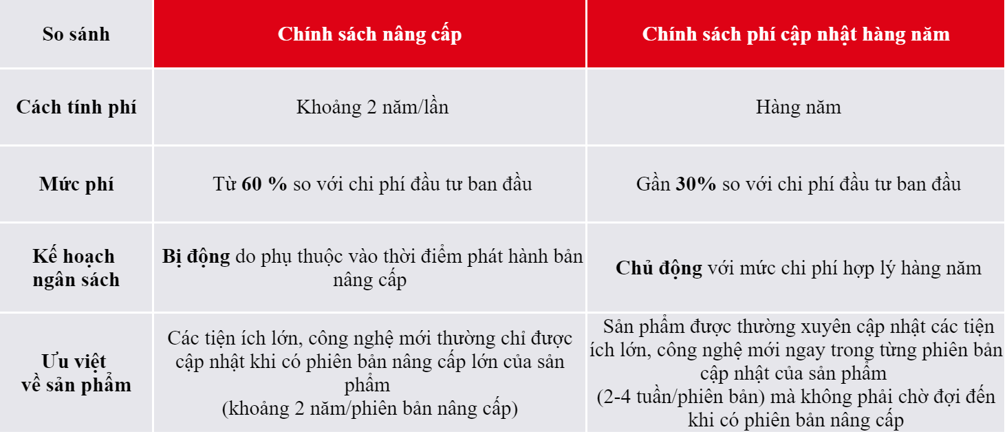 Chính sách cập nhật hàng năm khác biệt gì so với chính sách nâng cấp trước đây?