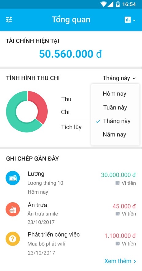 2. Nhắc lại phần báo cáo, bắt buộc phải tra cứu được dữ liệu, biết được mình chi tiêu cho đối tượng nào, chuyến đi, sự kiện nào nhiều nhất theo từng khoảng thời gian. Tháng này chi hơn tháng trước bao nhiêu, tầm này năm ngoài so với năm nay tăng bao nhiêu, và chi tiêu như thế này liệu có bị bội chi không? Từ đó biết cân đối hơn, sáng xem lại chi tiêu, thấy “ghê răng”, tối về bảo với vợ: “Em ơi, tháng này chi tiêu mua đồ chơi cho con hơi nhiều, tháng sau phải giảm thôi!!!”, kiểu vậy.