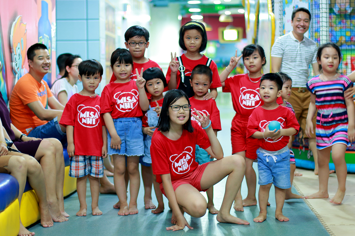 Các MISA Nhí của Văn phòng MISA Hà Nội nổi bật tại khu vui chơi với những chiếc áo đồng phục nổi bật