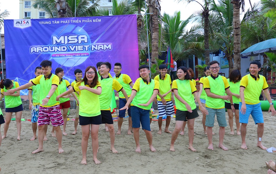 Ngày 21/7, tại bãi biển Hải Hòa xinh đẹp – điểm dừng chân mới của Khối sản xuất – Trung tâm Phát triển Phần mềm đã diễn ra chương trình teambuiding cực sôi động trong đợt nghỉ mát đầu tiên. Các thành viên đã có cơ hội chinh phục nhiều thử thách bất ngờ và thú vị. Đêm Gala dinner: “MISA around Việt Nam” đã tái hiện lại những màu sắc đặc trưng nhất của 5 văn phòng trên toàn quốc của MISA.