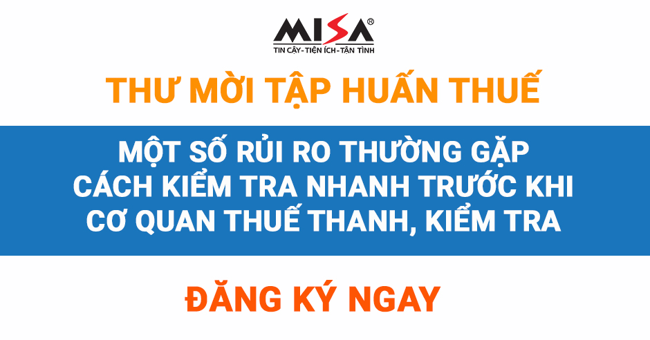 Đào tạo - Tập huấn Thư mời tham dự hội thảo: Một số rủi ro thường gặp – cách kiểm tra nhanh trước khi cơ quan thuế thanh, kiểm tra 11/09/2018 FacebookLinkedin