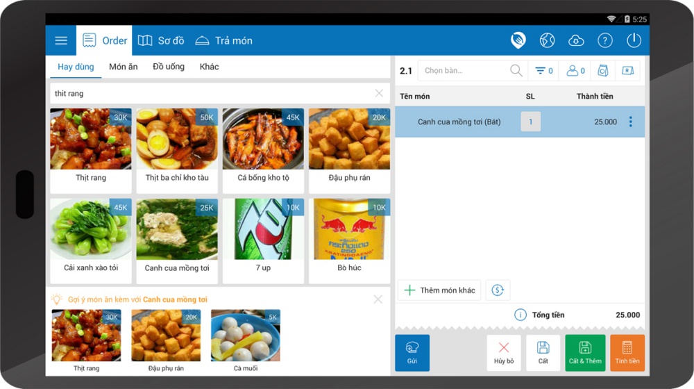 Gợi ý món là tính năng thông minh giúp nhân viên phục vụ dễ dàng tư vấn cho khách các món ăn, đồ uống phù hợp với nhau nhằm tăng sự hài lòng của thực khách với nhà hàng.