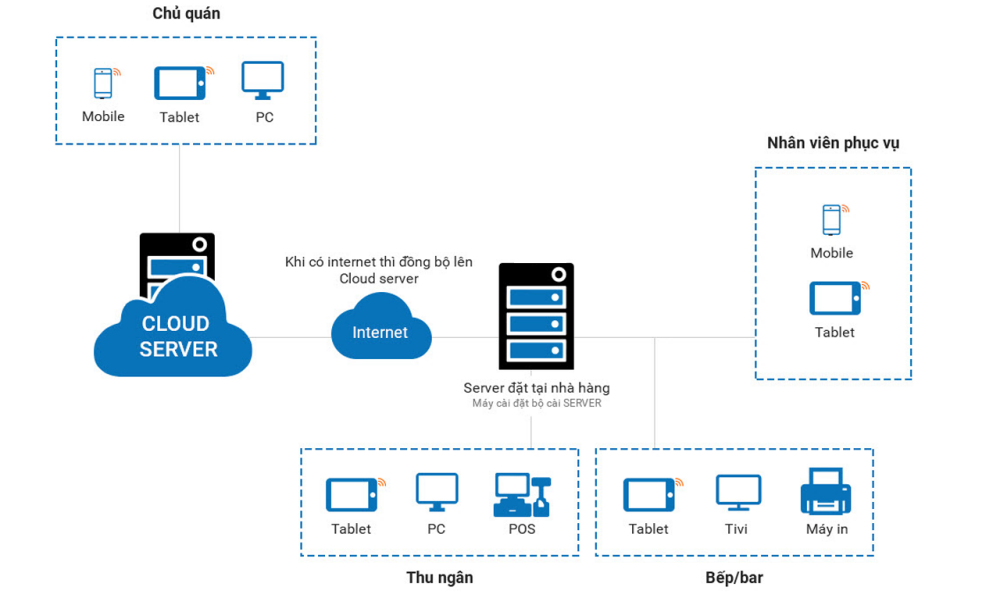 Mạng Internet xảy ra vấn đề là chuyện hết sức bình thường, chúng ta không thể lường trước được những vấn đề đó. Trong trường hợp mạng Internet gặp sự cố sẽ gây ảnh hưởng tới toàn bộ hoạt động chung của nhà hàng. Với mô hình offline, toàn bộ thiết bị tại nhà hàng sẽ được đồng bộ thông qua máy chủ nội bộ mà không cần đến Internet. Các giao dịch sẽ được đồng bộ thông qua mạng LAN
