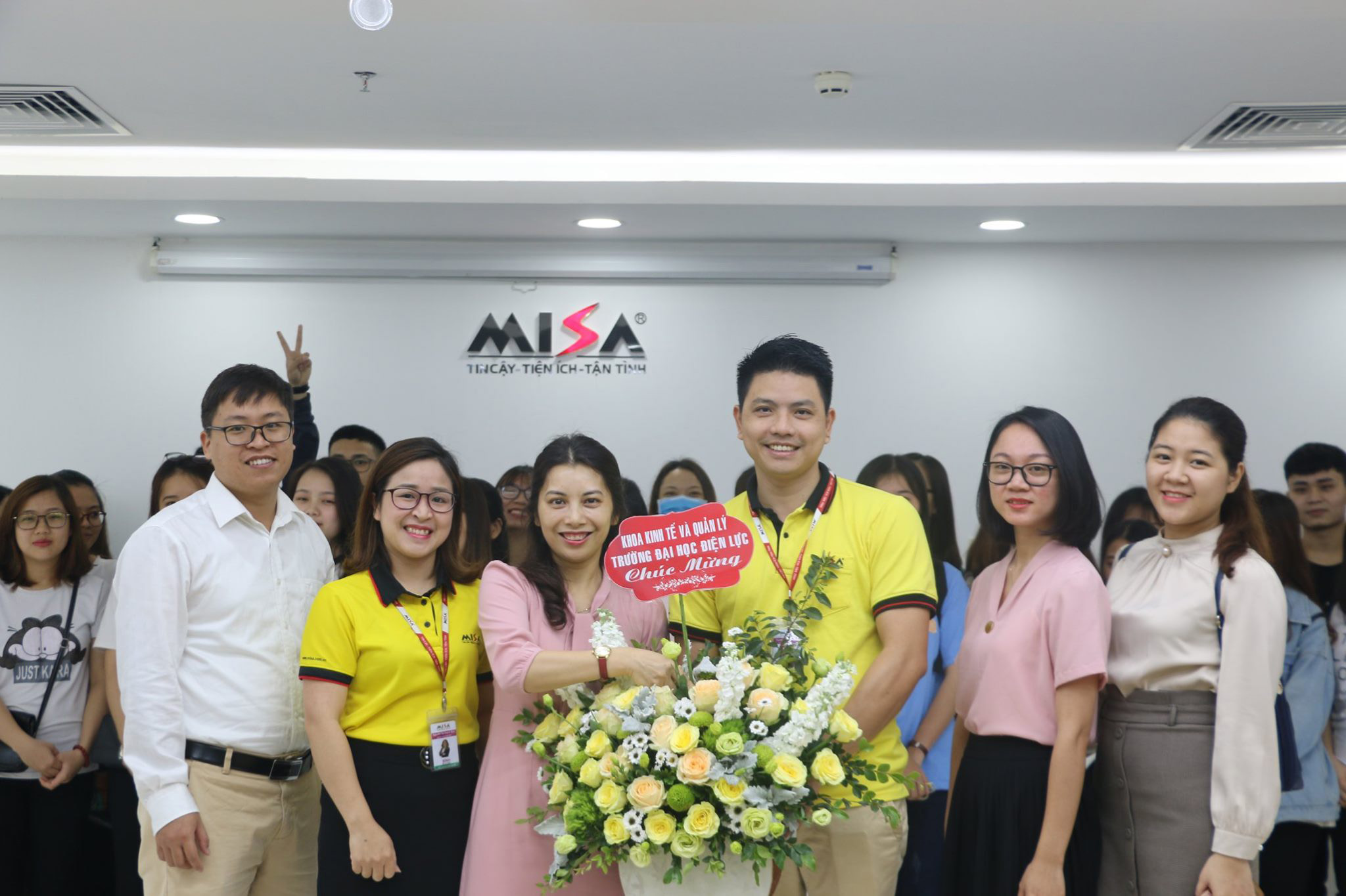 Đại diện Đại học Điện lực trao hoa cảm ơn tới MISA