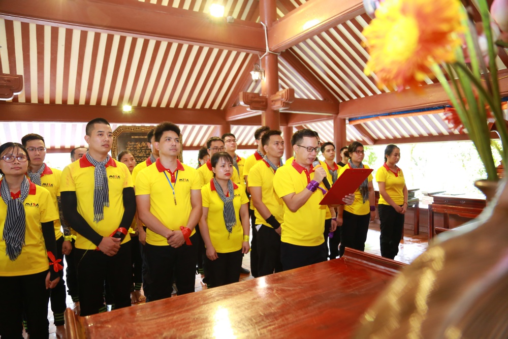 Trên đỉnh núi thiêng, các Hổ Tướng MISA nhanh chóng rũ bỏ mệt mỏi, mang Tâm sáng và tấm lòng thành kính cùng dâng hương lên đền thờ Chủ tịch Hồ Chí Minh, nguyện học tập, noi gương theo Người, cùng MISA thực hiện sứ mệnh phụng sự xã hội. Ông Nguyễn Xuân Hoàng – Phó Chủ tịch HĐQT Công ty Cổ phần MISA đại diện đoàn MISA đọc bài dâng hương, báo công với Chủ tịch Hồ Chí Minh